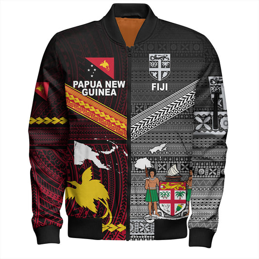 Fiji And Papua Bomber Jacket Polynesian And Tapa Together