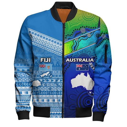Fiji And Australia Custom Personalised Bomber Jacket Fijian Tapa With Australia Aboriginal Style