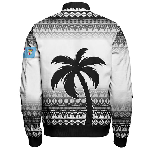 Fiji Bomber Jacket Fijian Tapa Patterns Palm Tree Design