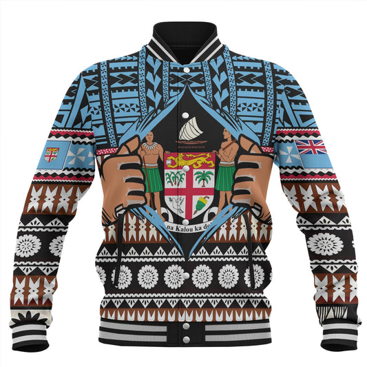 Fiji Baseball Jacket Rugby Ball Tapa Patterns