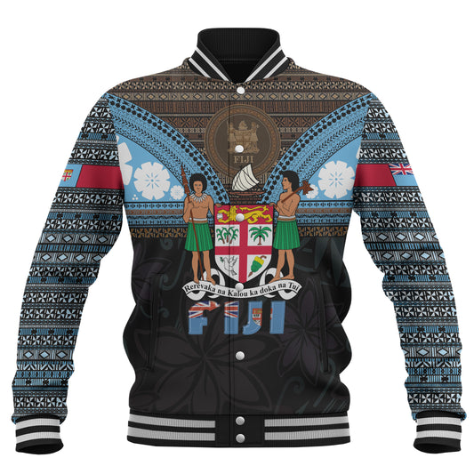 Fiji Baseball Jacket Fiji Day The Bula Spirit Fijian Hand Print Tapa Pattern Tropical Flowers