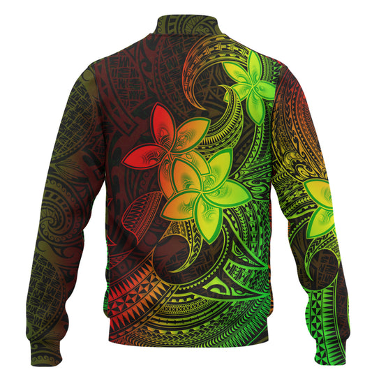 Fiji Baseball Jacket Plumeria Flowers Vintage Style Reggae Colors