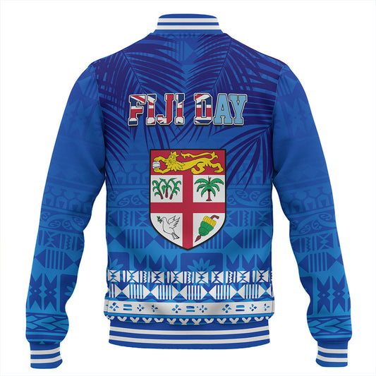 Fiji Baseball Jacket Happy Fiji Day Fijian Masi x Tropical Palm Leaf Tribal Curve Style