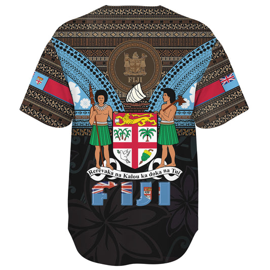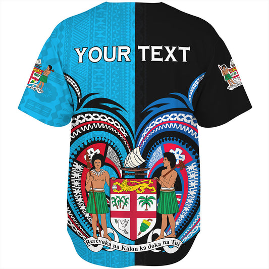 Fiji Baseball Shirt Fiji Map With Coat Of Arms Polynesian Tatau Half Black