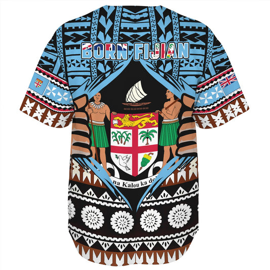 Fiji Baseball Shirt Born Fijian Masi Traditional Pattern Pacific Tribal Art