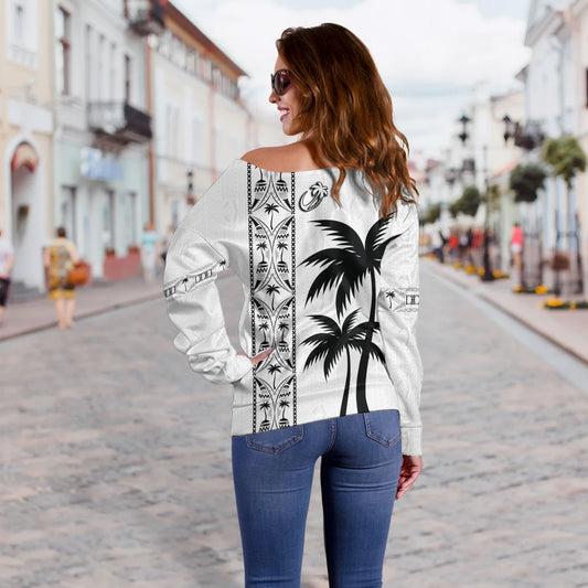 Fiji Off Shoulder Sweatshirt Fiji Rugby Tapa Palms Tree Designs