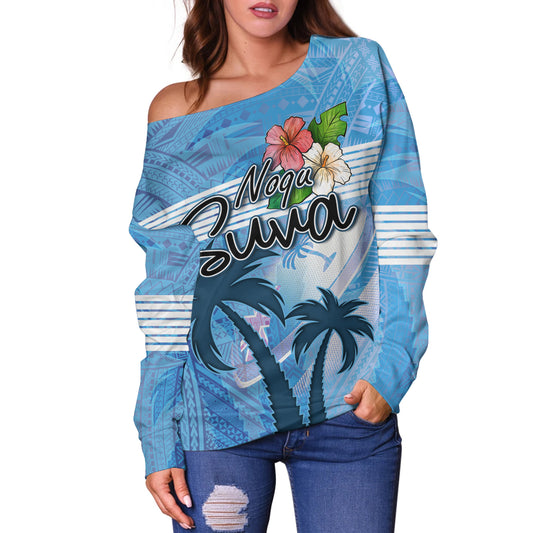 Fiji Off Shoulder Sweatshirt Suva Noqu Suva Hibiscus Flowers Fijian Patterns