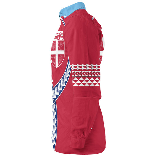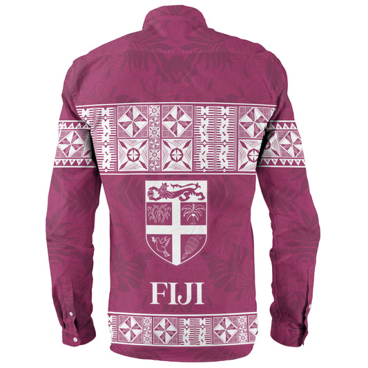Fiji Long Sleeve Shirt Coat Of Arms Pattern Traditional Style