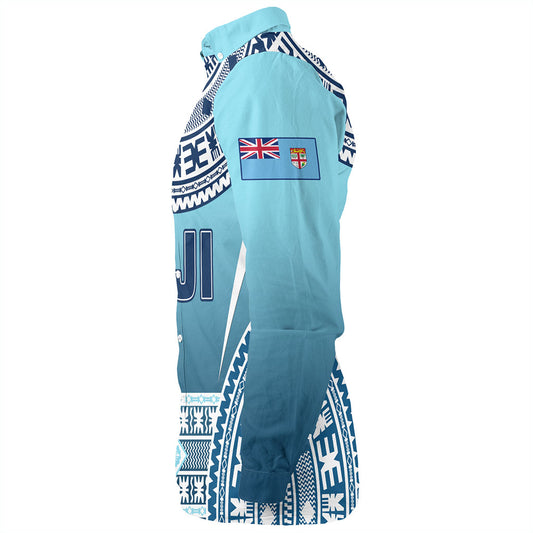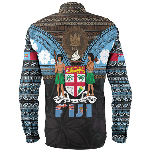 Fiji Long Sleeve Shirt Coconut Pattern And Coat Of Arms