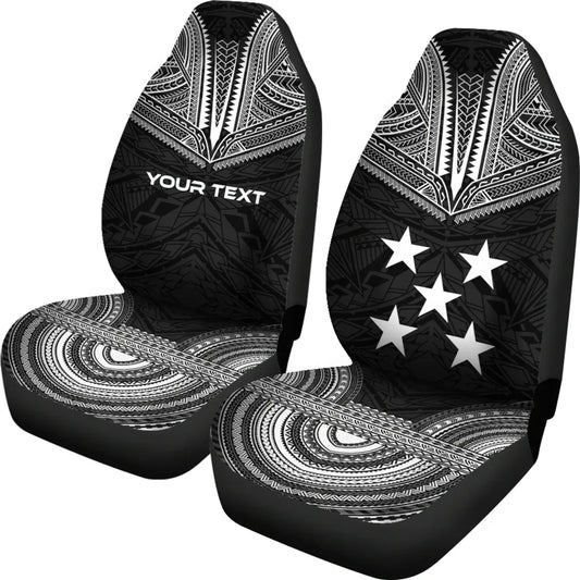 Gambier Islands Custom Personalised Car Seat Cover - Gambier Islands Flag Polynesian Chief Tattoo Black Version