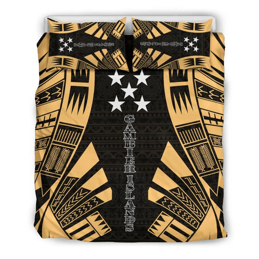 Gambier Islands Duvet Cover Set - Polynesian Tattoo Gold