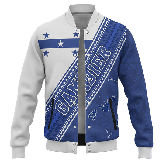 Gambier Islands Baseball Jacket Polynesian Tattoo Flag And Coat Of Arms