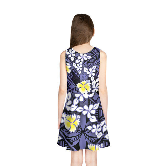 Polynesian Girls Sleeveless Sundress Plumeria Flowers Polynesian Patterns Purple Color