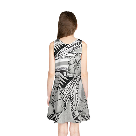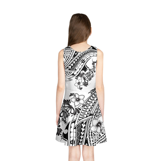 Polynesian Plumeria Flowers Curve Patterns Style Girls Sleeveless Sundress
