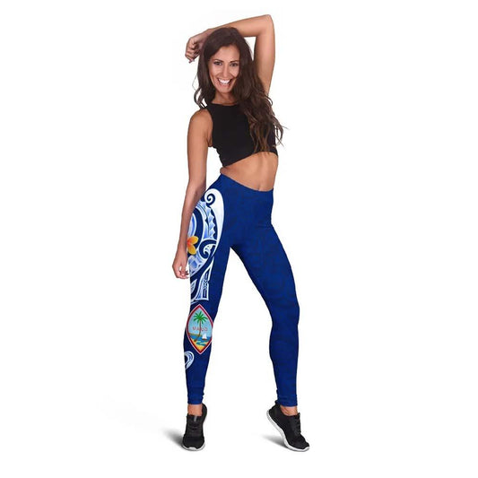 Guam Legging - Guam Seal With Polynesian Tattoo Style (Blue)