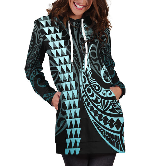 Guam Hoodie Dress Kakau Style Gradient Blue