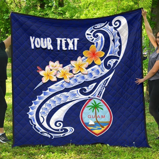 Guam Personalised Premium Quilt - Guam Seal Polynesian Patterns Plumeria (Blue)