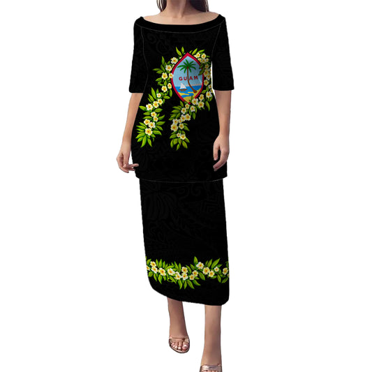 Guam Combo Puletasi And Shirt Polynesian Tribal Waves Patterns Hibiscus Flowers