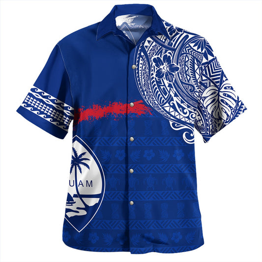 Guam Combo Dress And Shirt Coat Of Arms Kakau Style Gradient Blue