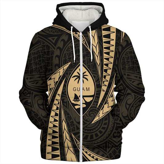 Guam Sherpa Hoodie Tribal Pattern Golden