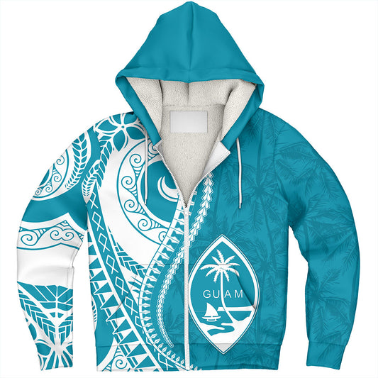 Guam Sherpa Hoodie Custom Tribal Coconut Tree Half Style