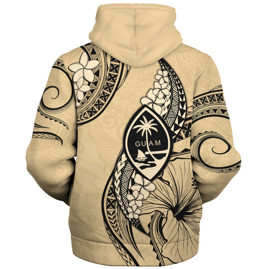Guam Sherpa Hoodie Tribal Seal Hook Hibiscus Style