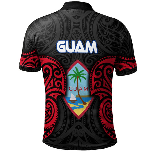 Guam Custom Personalised Polo Shirt - Guam Coat Of Arms Polynesian Chief Tattoo Black Version