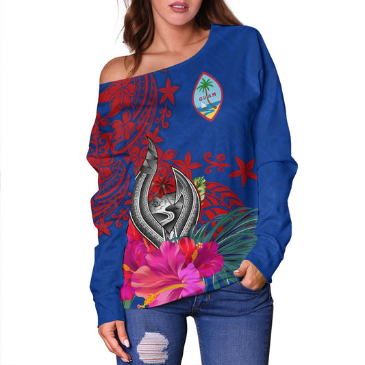 Guam Off Shoulder Sweatshirt Flag Tribal Tropical Style