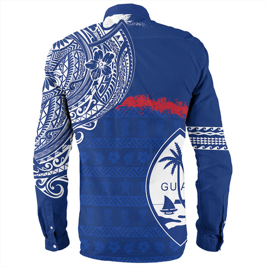 Guam Long Sleeve Shirt Hibiscus Flowers With Seal