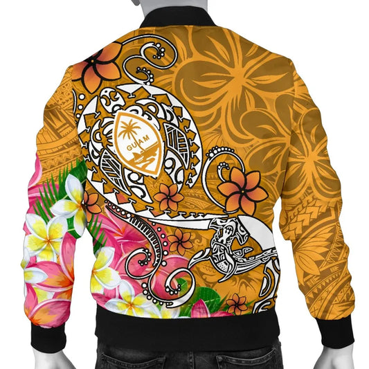 Guam Polynesian Bomber Jacket - Turtle With Blooming Hibiscus Reggae