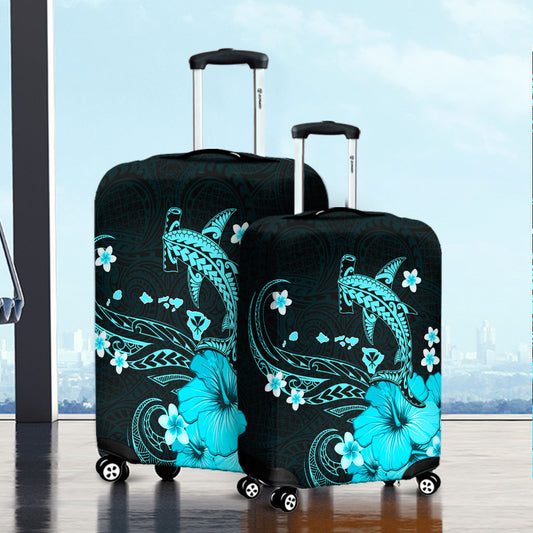 Hawaii Luggage Cover Kanaka Map And Shark Tribal Tattoo Turquoise