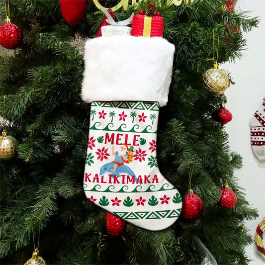 Hawaii Christmas Stocking Mele Kalikimaka Polynesian Pattern Christmas Dolphine Santa
