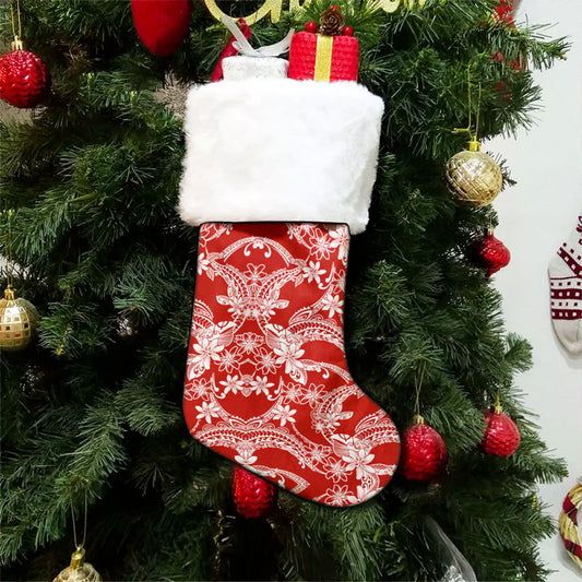 Hawaii Christmas Stocking Polynesian Print Fabric And Flower Red