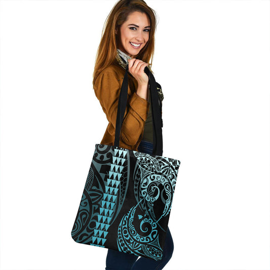 Hawaii Tote Bag Polynesian Turtle Tropical Blue Gardient Blue