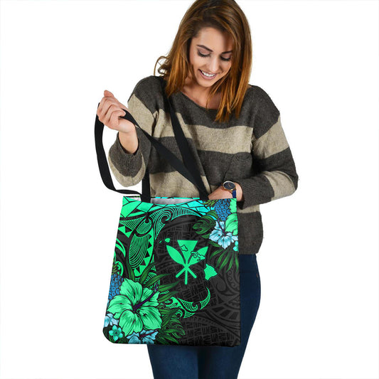Hawaii Tote Bag Polynesian Turtle Tropical Gardient Green