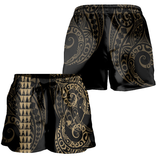 Hawaii Women Shorts Hawaiian Map Kakau Style Golden
