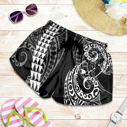 Hawaii Women Shorts Hawaiian Map Kakau Style Grey