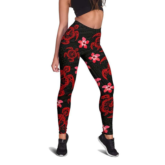 Hawaii Polynesian Personalised Legging - Vintage Polynesian Turtle (Red)