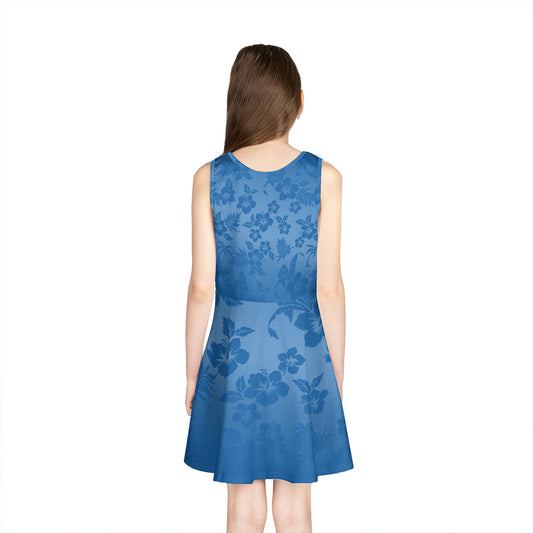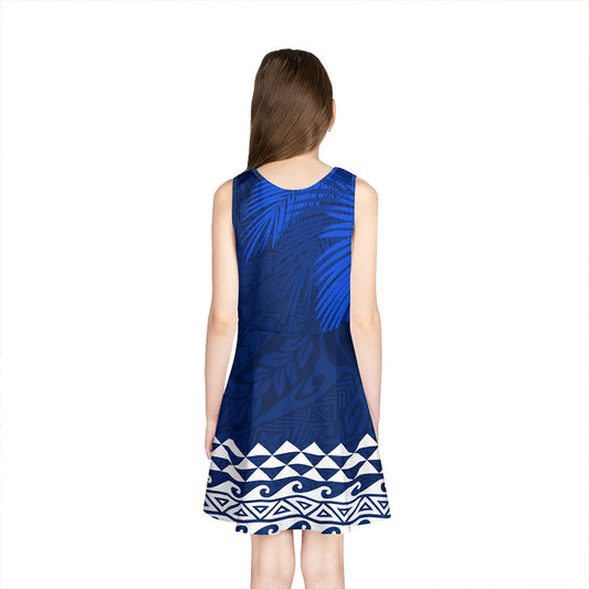 Hawaii Girls Sleeveless Sundress Polynesia Pattern Tattoo Blue
