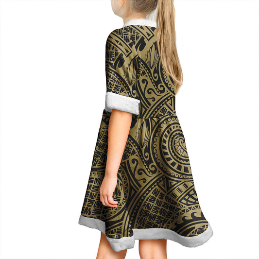 Hawaii Women and Kid Christmas Dress Polynesia Tribal Pattern Gold