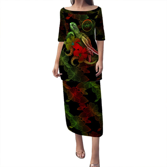 Hawaii Puletasi - Sea Turtle With Blooming Hibiscus Flowers Reggae