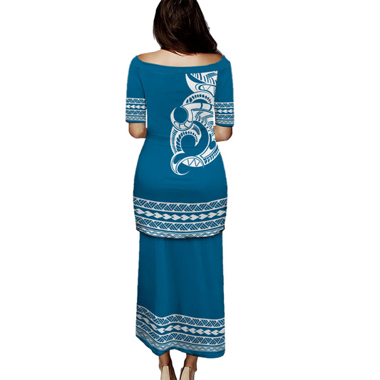 Hawaii Puletasi Kanaka Kakau Style Turquoise