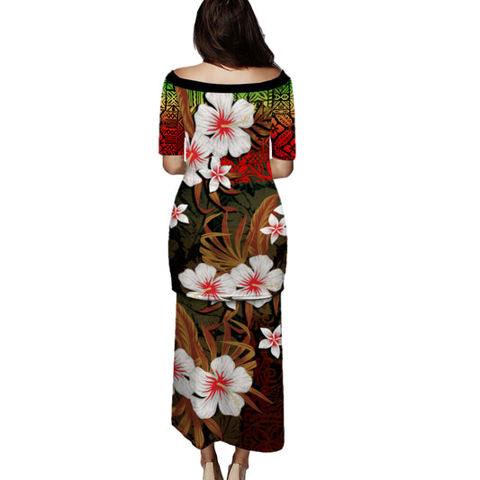 Hawaii Puletasi Lilies With Polynesian Pattern