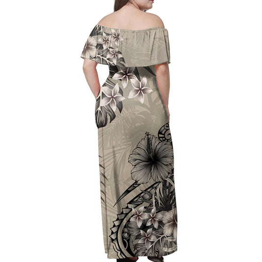 Hawaii Woman Off Shoulder Long Dress Kanaka Tribal Plumeria