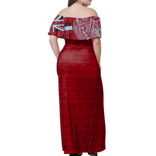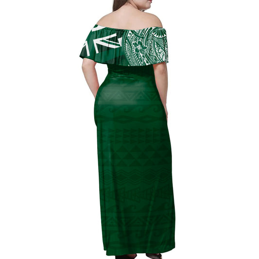 Hawaii Woman Off Shoulder Long Dress Tribal Hawaiian Map Kakau Style