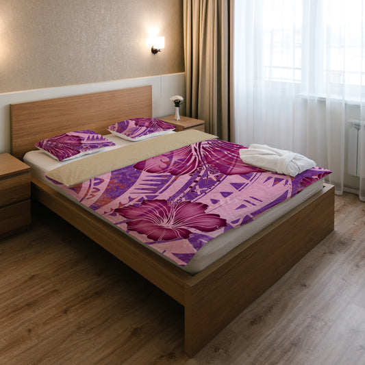 Hawaii Bedding Set Polynesian Motif Purple Hibiscus