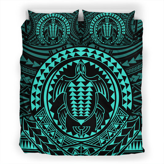 Hawaii Bedding Set Kakau Honu Arc Polynesian Turquoise