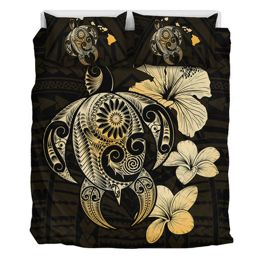 Hawaii Bedding Set Polynesian Turtle Map Hawaii Plumeria