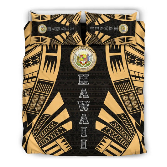 Hawaii Duvet Cover Set - Polynesian Tattoo Gold