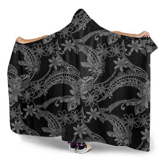 Hawaii Hooded Blanket Polynesian Tribal Tattoo Plumeria Flower